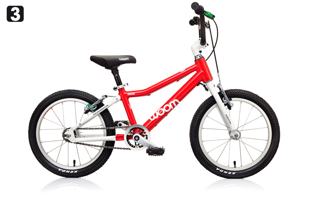 Das 16“-Modell WOOM 3 bietet eine gutmütige Geometrie mit aufrechter Sitzposition und tiefem Schwerpunkt. Damit hilft es den Kindern ihr Fahrkönnen weiter zu verbessern. Die kurzen Kurbeln und das tiefe Tretlager erleichtern das Absetzen der Füße auf dem Boden, ganz ohne dass das Kind seitlich aus dem Gleichgewicht gerät.
